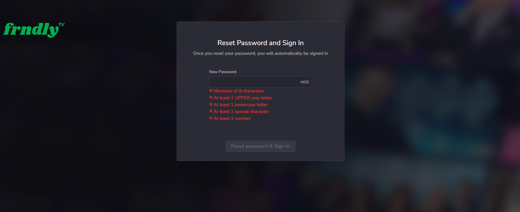 After resetting your password, you can use your new information to sign in to Frndly TV on any device!